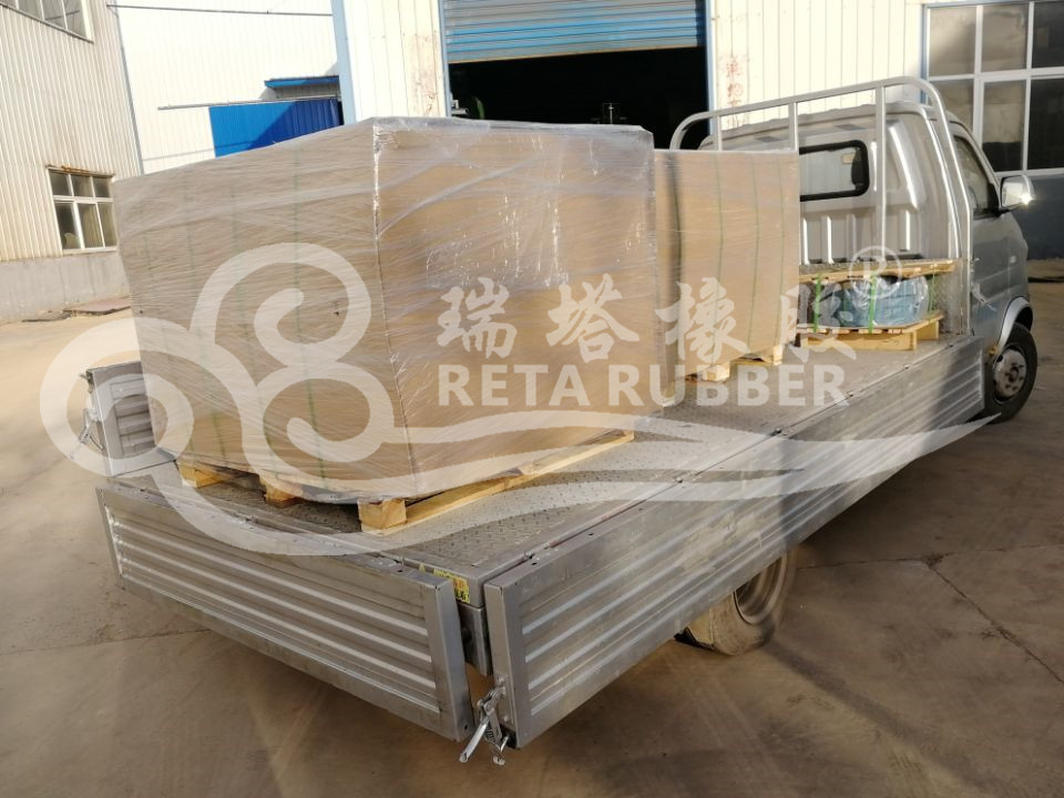 河北客戶500根高分子緩沖條裝車發(fā)貨