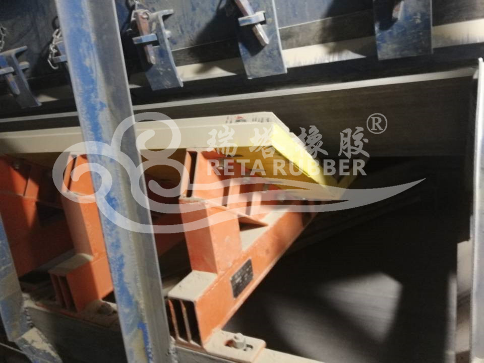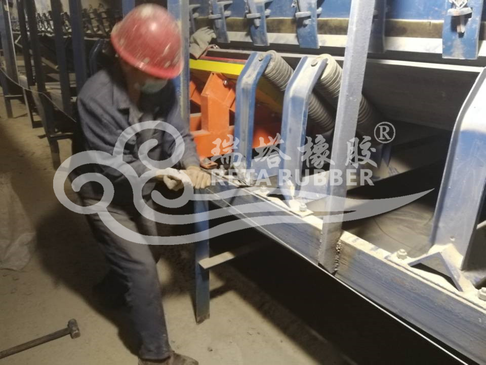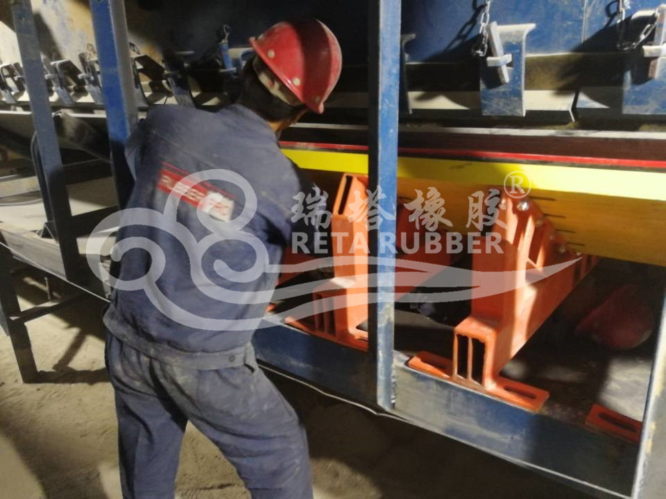 瑞塔橡膠皮帶三隊緩沖床現場施工