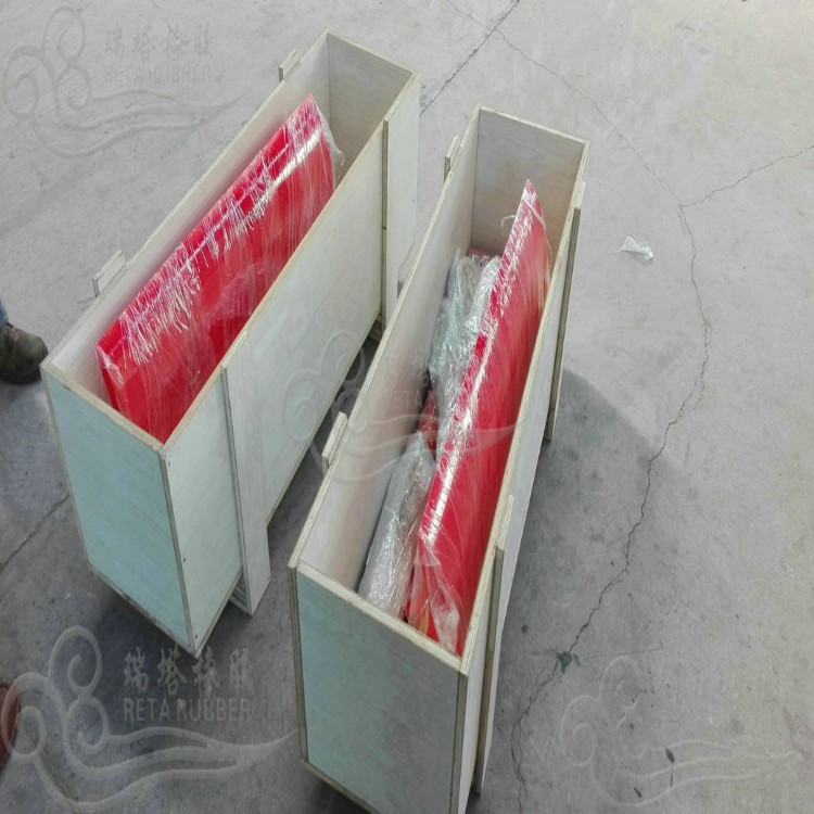瑞塔橡膠為用戶提供的帶寬1000mm聚氨酯清掃器,標準包裝發貨有效確保清掃器組件完整無損傷,同時瑞塔橡膠為用戶提供有效的售后技術支持。