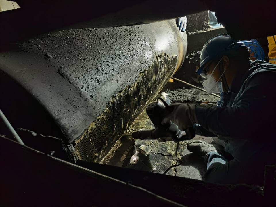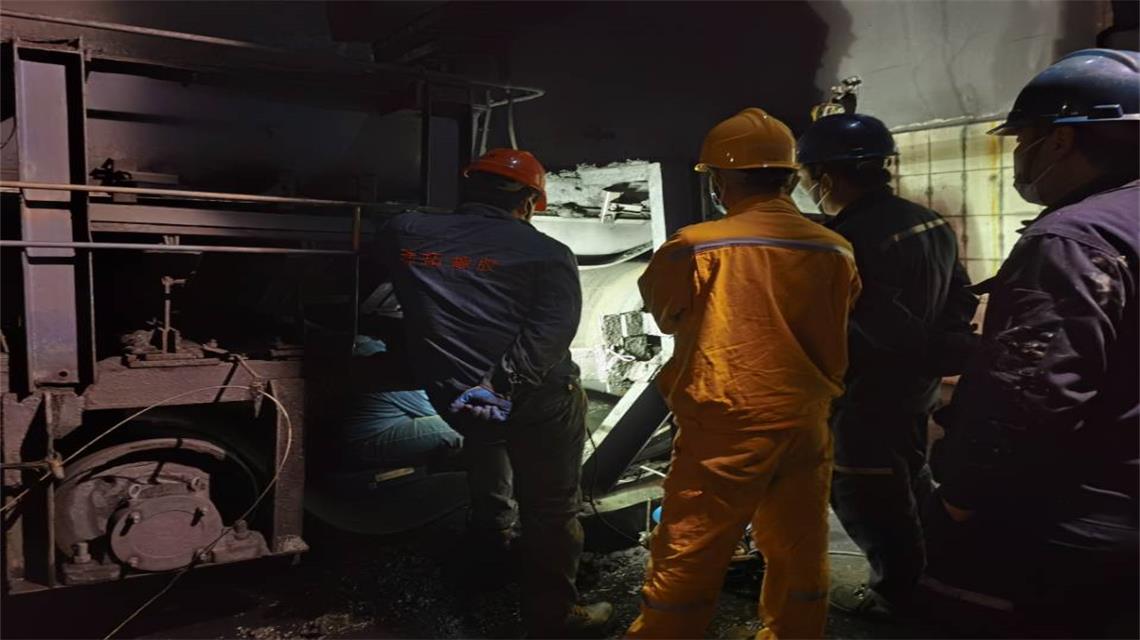 某煤礦滾筒包膠施工現場