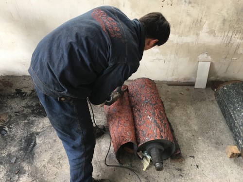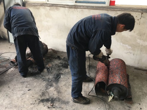 滾筒現場包膠鏟去表面廢舊橡膠