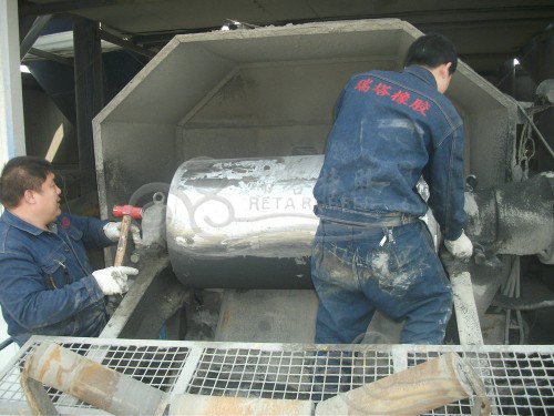 混凝土攪拌站現(xiàn)場滾筒包膠