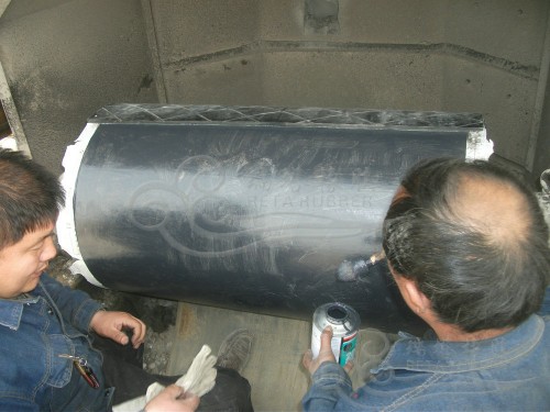 以下是瑞塔為混凝土攪拌站提供的現(xiàn)場滾筒包膠服務(wù),滾筒位于離地面3米位置,滾筒直徑1.15米,之前滾筒包膠先需租用吊車將其吊卸下來,然后拉到廠區(qū)經(jīng)行熱硫化包膠,其使用壽命較不超過1年,而且每次更換維護(hù)成本較高,瑞塔橡膠這次為客戶提供提供現(xiàn)場包膠服務(wù),質(zhì)保2年,無需拆卸,包膠總計花費6小時,即包即用大大降低客戶的停機(jī)維護(hù)時間,很好的為客戶解決問題。